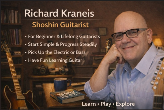 I am a lifelong learner who has spent decades coaching others in new skills (PMP, Scrum, software). As of late 2025, I’ve been playing guitar for two years and bass for one. I’m not a formal guitar or bass teacher; I’m a fellow traveler “learning in public” to show that you can progress independently and sustainably.
