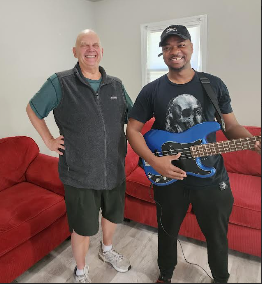 Bald White Guy Smiling with Sean and his New Bass