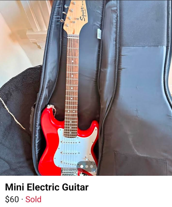 Here is the photo of the Fender Squier Mini Stratocaster from Facebook Marketplace in Chicago, IL USA. It was October, 2025.